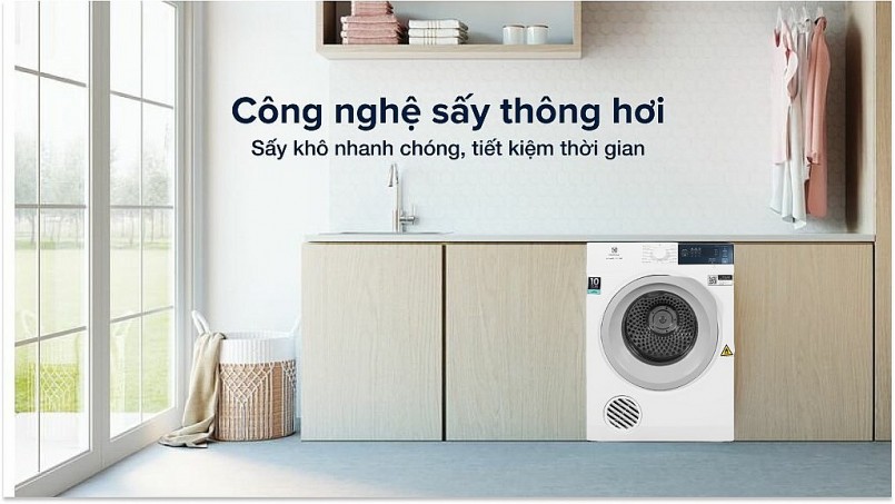Máy sấy quần áo là thiết bị được nhiều gia đình lựa chọn sử dụng, đặc biệt là vào mùa mưa, nồm ẩm bởi khả năng sấy khô quần áo nhanh chóng, tiện lợi, giúp tiết kiệm thời gian và công sức cho người dùng. Ngoài ra, máy sấy quần áo còn giúp khử mùi, diệt khuẩn, bảo vệ quần áo khỏi nấm mốc, an toàn cho sức khỏe người sử dụng.
