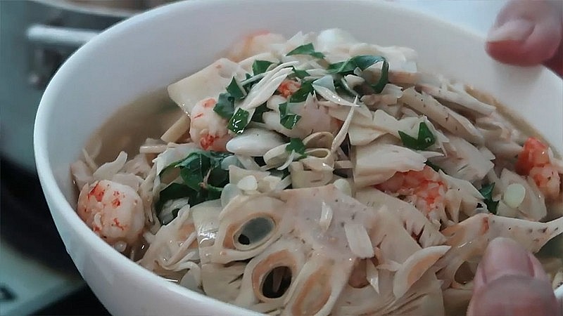 | Nấu canh mít non tôm tươi và lá lốt |