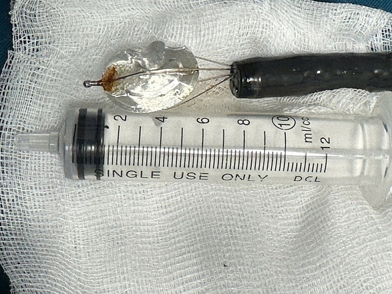 | Các bác sĩ đã tiến hành nội soi và gắp thành công một nắp lon nước ngọt có đường kính khoảng 2cm. |