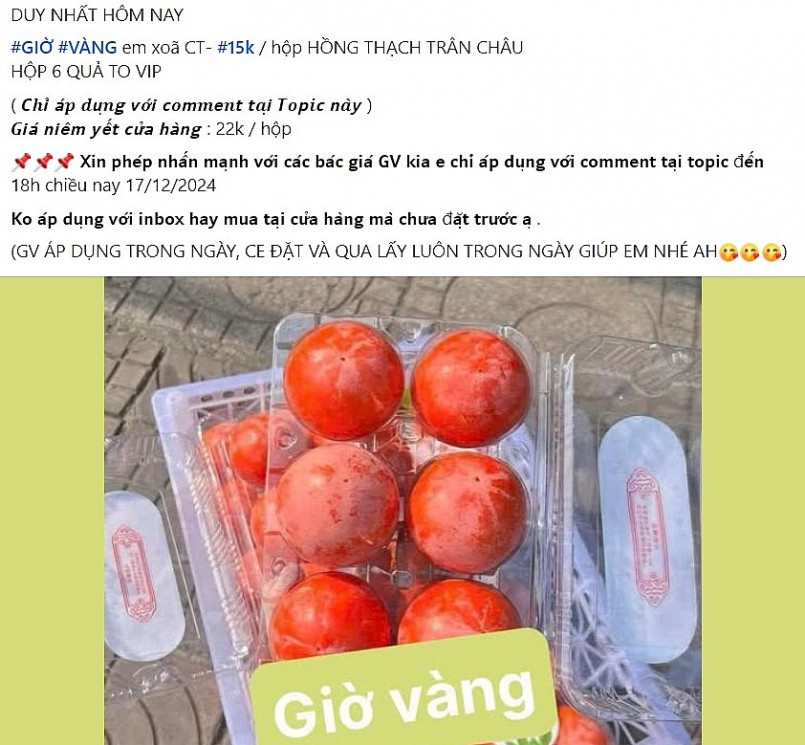 Tuy nhiên, gần đây lại được bán theo hộp với giá 15.000 – 30.000 đồng/hộp 6 quả (1 kg khoảng 2 hộp). Hồng được rao bán rất nhiều trên "chợ mạng" và chợ truyền thống.