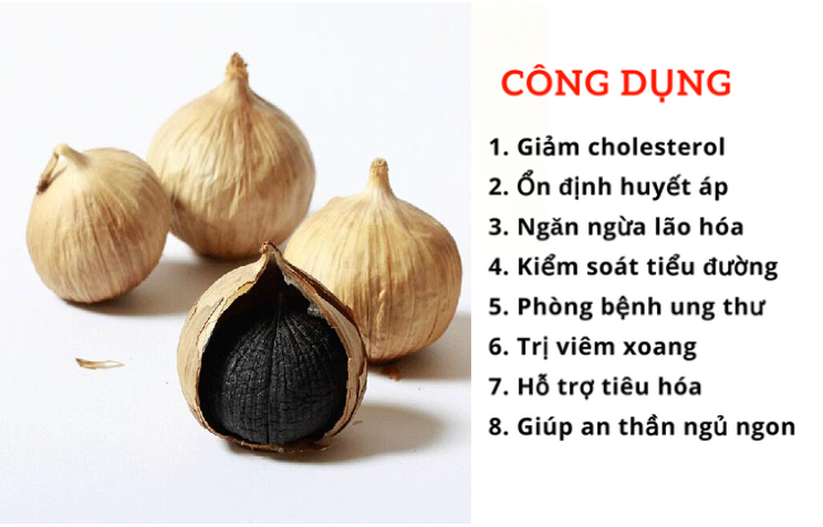 Nghiên cứu cho thấy việc ăn tỏi đen có khả năng cải thiện trao đổi chất như giảm cholesterol, giảm viêm và điều chỉnh sự thèm ăn. Ngoài ra, hoạt động chống oxy hóa của tỏi đen có thể giúp bảo vệ chống lại các biến chứng thường do lượng đường trong máu cao.