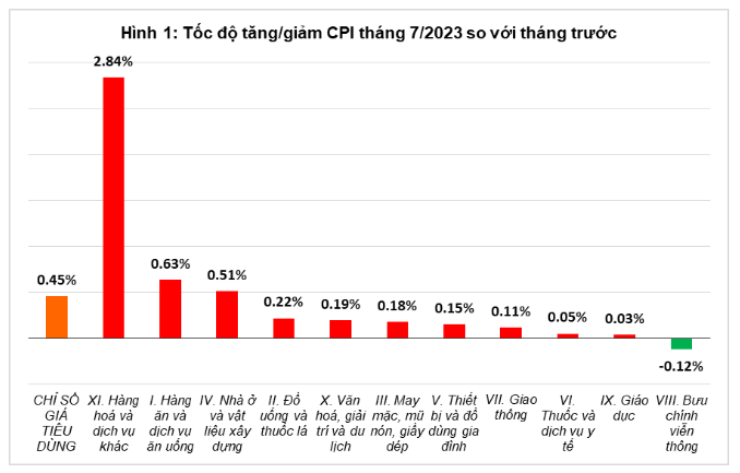 CPI tháng 7/2023 tăng 0,45% so với tháng trước