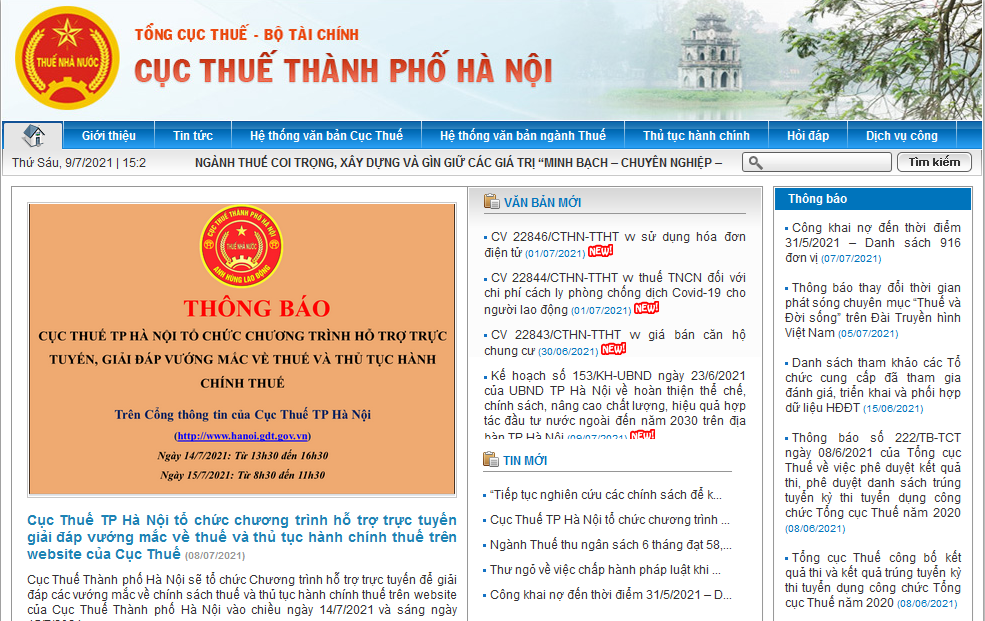 Theo Cục Thuế thành phố Hà Nội, để tháo gỡ khó khăn cho các doanh nghiệp và người nộp thuế trước ảnh hưởng của dịch bệnh COVID-19, từ 14-15/7, Cục Thuế thành phố Hà Nội sẽ tổ chức chương trình hỗ trợ trực tuyến để giải đáp các vướng mắc về chính sách thuế và thủ tục hành chính thuế trên website của Cục Thuế thành phố.
