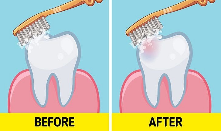 Mặt khác, bạn cũng không nên chải răng quá nhiều, quá mạnh hoặc quá lâu vì điều này sẽ dễ gây tổn thương men răng. Theo đó, nên đánh răng theo nguyên tắc 3/3/3: Đánh răng 3 lần mỗi ngày, chải cả 3 mặt trước, trong và sau răng, thời gian đánh răng không nên quá 3 phút.