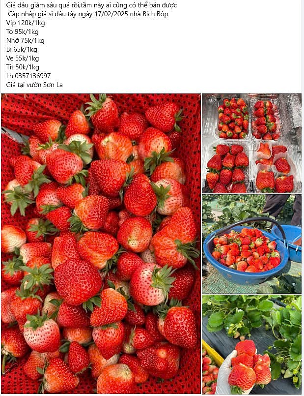 Trong mắt của nhiều người dâu tây là loại trái cây xa xỉ, đắt đỏ thường được bán trong những cửa hàng hoa quả nhập khẩu với mức giá từ 200-450.000 đồng/kg (tùy loại). Tuy nhiên thời gian gần đây, "chợ dâu tây" trên mạng xã hội cũng sôi động không kém. Gõ từ khóa "dâu tây giá rẻ" trên mạng xã hội Facebook xuất hiện hàng chục hội nhóm buôn bán sôi nổi, "mức giá hấp dẫn" chỉ 20.000 đồng/hộp 520g -530g. Theo khảo khát giá chỉ dao động từ 25.000-50.000 đồng/kg (tùy loại).
