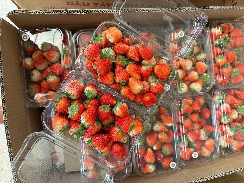 Dâu tây được quảng cáo với nguồn gốc từ Mộc Châu, Sơn La được bày bán tràn lan trên khắp chợ mạng với giá chỉ 20.000 - 50.000 đồng/hộp. Theo chuyên gia, rất khó để phân biệt dâu tây có nhiễm hóa chất không, vì thế mọi người nên cân tận khi sử dụng.