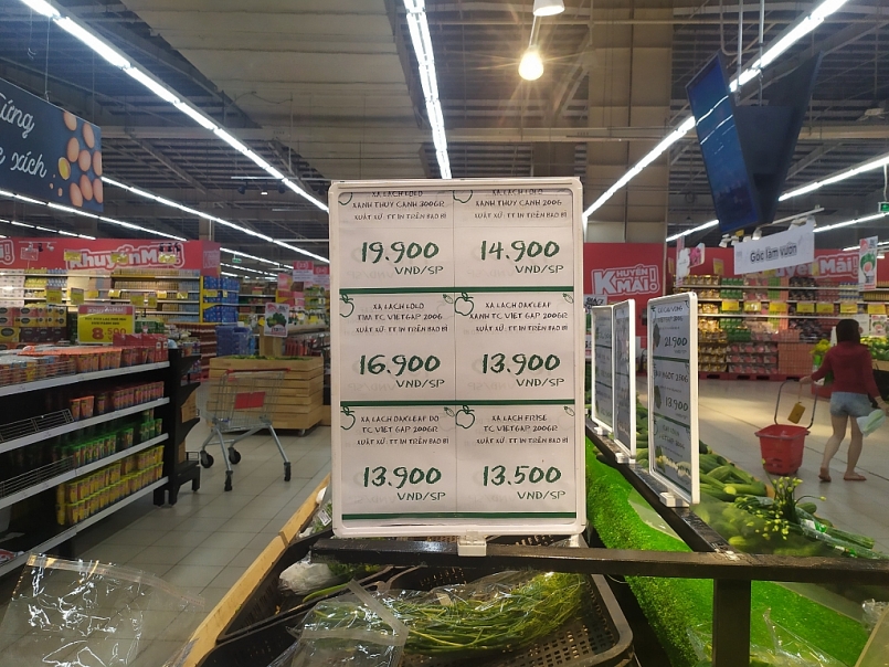 | Các mặt hàng, đặc biệt là rau xanh phong phú, cửa hàng thực hiện niêm yết giá bán và khuyến cáo "mỗi khách hàng mua 2kg rau/ mỗi loại" |