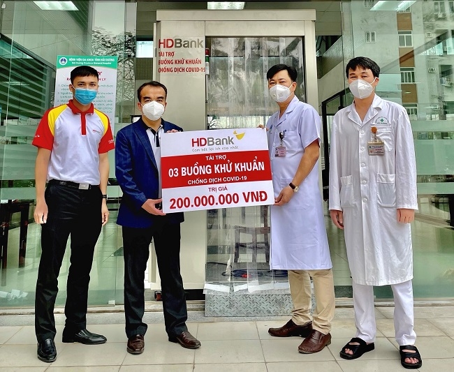 Hưởng ứng lời kêu gọi của Chính phủ, ngày 15/03/2021, HDBank tiếp tục cuộc hành trình hỗ trợ Hải Dương trong công tác phòng, chống dịch Covid-19 và tiếp sức người dân nơi tâm dịch. HDBank đã trao tặng 2 buồng khử khuẩn cho Bệnh viện đa khoa Hải Dương và 1 buồng khử khuẩn cho Bệnh viện dã chiến số 3 thành phố Chí Linh với tổng giá trị 200 triệu đồng.