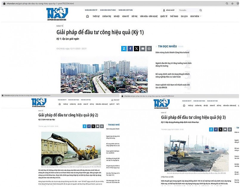 | Loạt bài “Giải pháp để đầu tư công hiệu quả” đăng trên ấn phẩm Thời Nay (báo Nhân Dân) tháng 11/2023, phân tích những bất cập trong cơ chế đầu tư công và gợi mở hướng cải cách từ góc nhìn báo chí. |