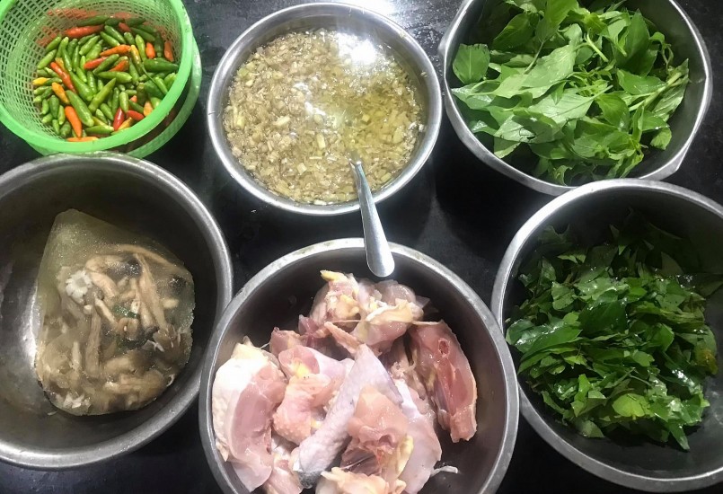 Ngoài ra, dân địa phương thường nấu canh này với măng tươi (măng le, măng tre mỡ…), cùng 3 – 5 trái ớt chim gieo hoặc ớt xiêm xanh giã giập, thêm chén sả tươi bằm, mớ lá é trắng cùng vài nắm lá giang.