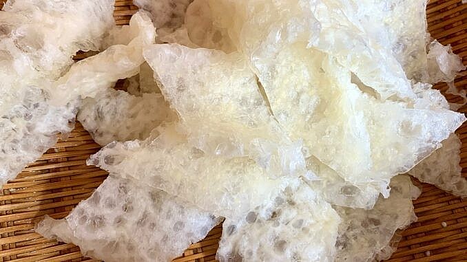 | Bóng bì được làm nên bởi bì lợn, bày bán nhiều ở chợ và siêu thị với giá thành rẻ |