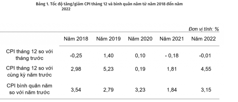 | Lạm phát cơ bản tháng 12 và bình quân năm từ năm 2018 đến năm 2022 |