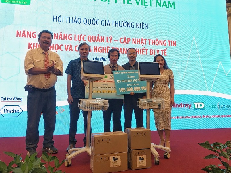 Trong nhiều năm qua Hội thiết bị y tế Việt Nam đã vận động các nhà sản xuất Trang thiết bị y tế trong nước và các nhà phân phối trang thiết bị y tế tặng các trang thiết bị y tế cho các cơ sở y tế vùng sâu, vùng xa, vùng còn gặp nhiều khó khăn…và năm nay cũng vậy tại tại Hội thảo, Hội Thiết bị Y tế Việt Nam đã tổ chức trao tặng quà cho Bệnh viện huyện Mộ Đức tỉnh Quảng Ngãi và bệnh viện huyện Di Xuyên tỉnh Quảng Nam.
