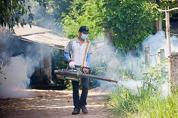 | Phun thuốc muỗi để phòng tránh sót xuất huyết. |