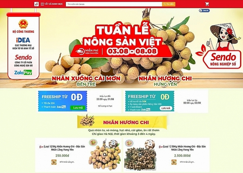 Ngoài nhãn lồng Hưng Yên, thời gian qua với sự ủng hộ của Bộ Công Thương và các Sở ban ngành địa phương, Sàn thương mại điện tử Sendo đã phối hợp với Cục Thương mại điện tử và Kinh tế số (thông qua Gian hàng hàng Việt trực tuyến quốc gia) liên tục xây dựng các chương trình hỗ trợ quảng bá và tiêu thụ nhiều loại cây trái tới vụ qua kênh phân phối online. Nổi bật, có các Chương trình vải thiều Thanh Hà – Hải Dương, vải thiều Bắc Giang, các chương trình Phiên chợ Nông sản hay Tuần lễ Nông sản Việt với các sản phẩm trái cây đặc sản các vùng miền như Xoài xanh, Mận Sơn La, Lê thơm Tai Nung – Lào Cai, Bơ Đắc Lắc, Bưởi da xanh Bến Tre, Nho xanh Ninh Thuận hay Sầu riêng Ri6 Trà Vinh . . . Đến nay, hàng trăm tấn đã trái cây đã được tiêu thụ qua các chương trình này.