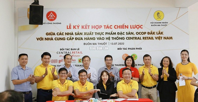 Sở Công thương tỉnh Đắk Lắk vừa phối hợp với Hội Doanh nhân TP. Buôn Ma Thuột tổ chức Lễ ký kết hợp tác chiến lược giữa các nhà sản xuất thực phẩm đặc sản, OCOP tỉnh Đắk Lắk với nhà phân phối đưa hàng vào hệ thống siêu thị Tập đoàn Central Retail. Việc lý kết mở ra cơ hội mới cho các doanh nghiệp trong việc mở rộng thị trường tiêu thụ hàng hóa, nông sản... của địa phương.