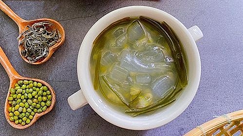 Súp hoặc chè đậu xanh là món yêu thích của nhiều người trong mùa hè nóng nực nhờ đặc tính chống viêm giúp bạn ngừa sốc nhiệt, tăng nhiệt độ cơ thể, khát nước… Tuy đậu xanh có thể giúp bạn ngừa sốc nhiệt, bạn vẫn cần bổ sung nhiều nước trong mùa nắng nóng. Uống đủ nước là yếu tố quan trọng giúp bạn phòng tránh các bệnh mùa hè như sốc nhiệt.