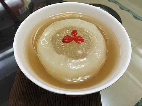 | Lê hấp mật ong trị ho, tiêu đờm rất hiệu quả |