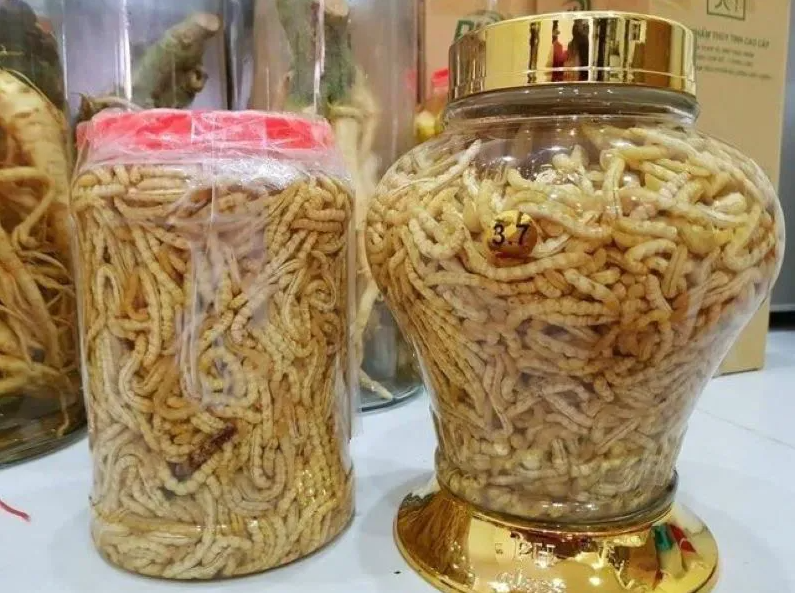 | Sâu chít - món ăn bổ dưỡng được ví như đông trùng hạ thảo. |