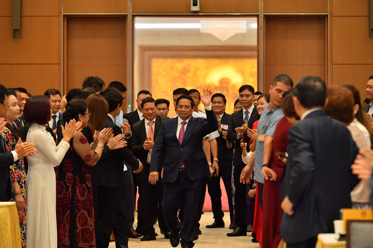 Thủ tướng bày tỏ vui mừng trước sự lớn mạnh của cộng đồng doanh nghiệp, đội ngũ doanh nhân, coi đây là lực lượng ngày càng phát huy vai trò dẫn dắt, tiên phong trong phát triển kinh tế - xã hội và hội nhập quốc tế. Ngay cả trong giai đoạn khó khăn như đại dịch COVID-19, doanh nghiệp, doanh nhân vẫn duy trì sản xuất, đồng hành, chia sẻ với Đảng, Nhà nước và nhân dân, góp phần đảm bảo an sinh xã hội, không để ai bị bỏ lại phía sau.