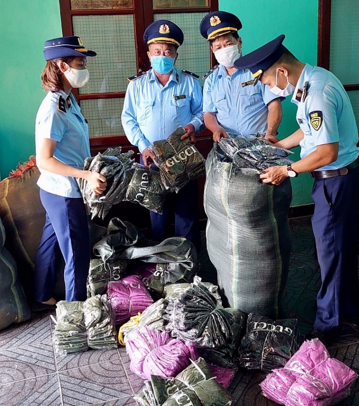 Quá trình kiểm tra lực lượng chức năng đã phát hiện hàng hóa là áo quần không có hóa đơn chứng từ, không rõ nguồn gốc xuất xứ, có dấu hiệu giả mạo nhãn hiệu Lacoste, Gucci, Chanel…với số lượng là 1.290 bộ, có trị giá ban đầu ước tính trên 200 triệu đồng.