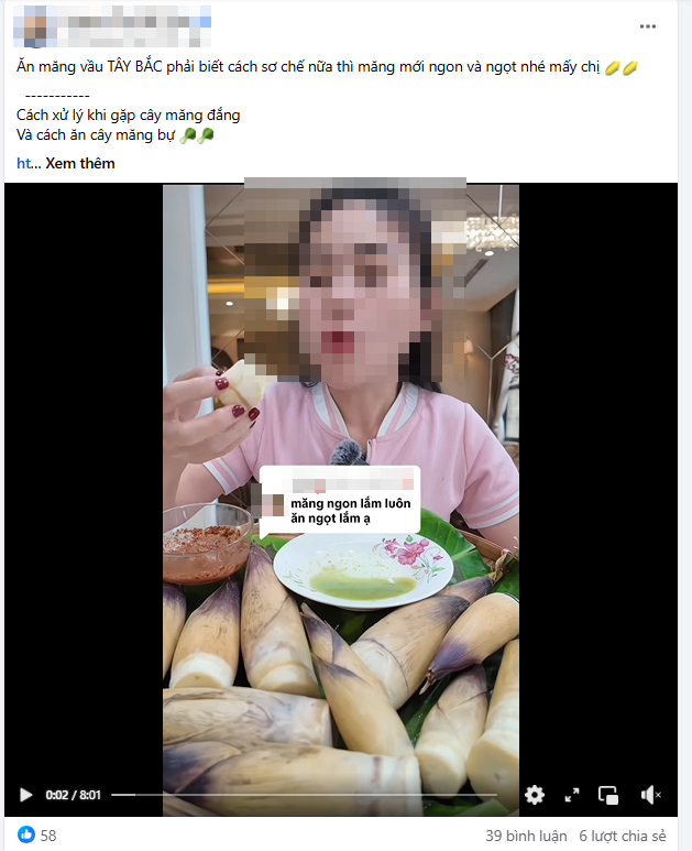 | Măng vầu chấm chẩm chéo được nhiều người ăn và quay clip lên mạng xã hội. |