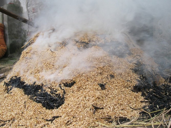Sau khi kiểm tra chậu, gạch chắc chắn, đầu bếp bắt đầu trải rơm và trấu lên thành chậu và đốt xung quanh, phía trên chậu liên tục trong 30 phút.