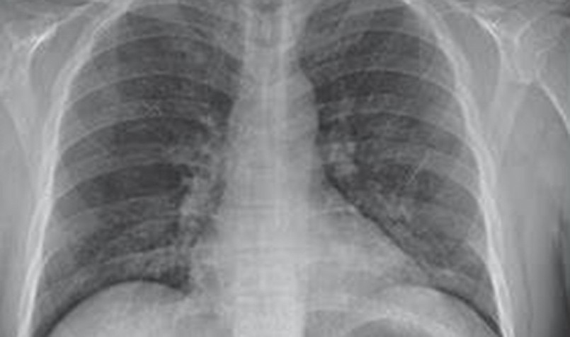 | Hình ảnh "phổi trắng" trên phim X-quang. |