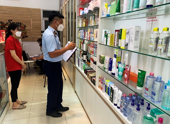Đội Quản lý thị trường (QLTT) số 1 thuộc Cục QLTT tỉnh Vĩnh Phúc phối hợp với Công an TP. Vĩnh Yên tiến hành kiểm tra với Cửa hàng Sam Sam phát hiện nhiều mỹ phẩm không rõ nguồn gốc, xuất xứ.